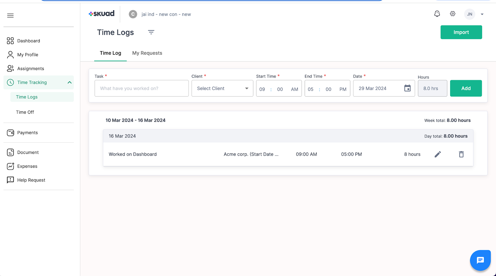 The Time Logs interface has been redesigned with a user-friendly appearance, streamlining the process for contractors to submit their timesheets effortlessly.
