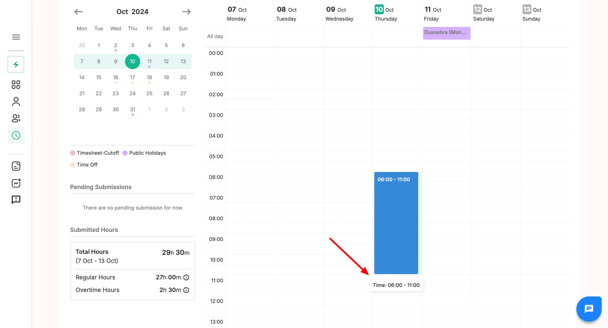 Employees can use the new ‘Calendar View’ to log time intuitively. This feature allows them to view, add, and edit hours in a way that fits seamlessly into the workflow. They can submit hours at any point within the pay period, with no restrictions on the number of logs that can be submitted.