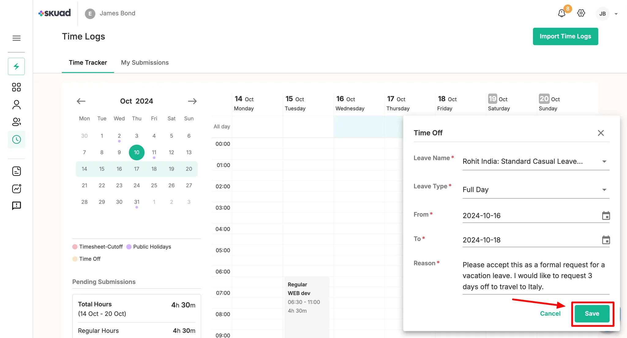 In countries where timesheet filing is mandatory, employees now have the option to auto-fill logs for the entire month, saving time and ensuring compliance.