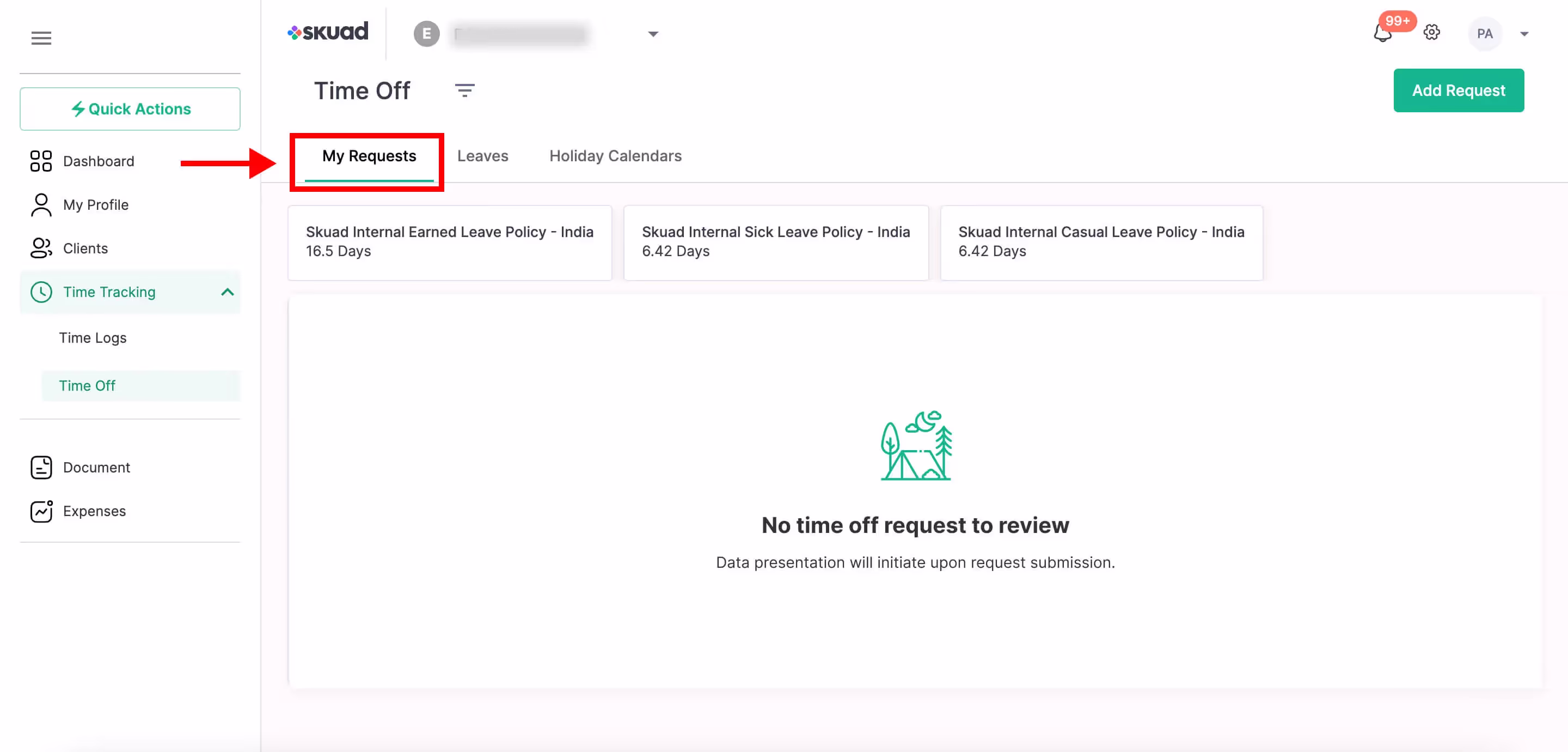 Step 5: To check the status of your applied leave, navigate to the ‘My Requests’ tab. Here, you'll find a list of leaves you've applied for along with their current status.