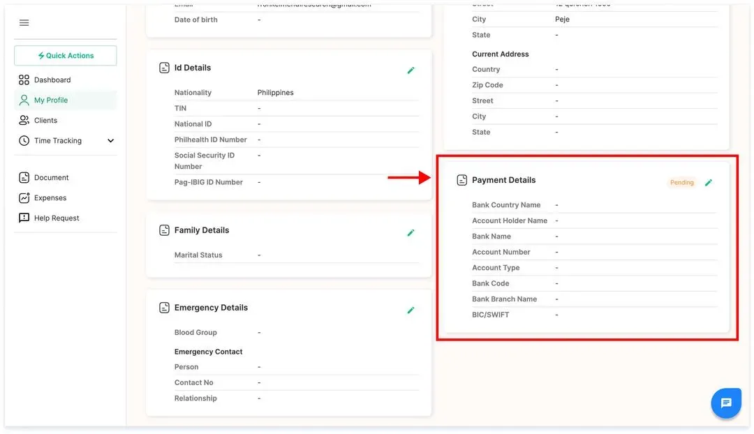 Step 2: Scroll down under ‘Personal Details’ and find the bank details section. Click on the pencil icon to change your bank details.
