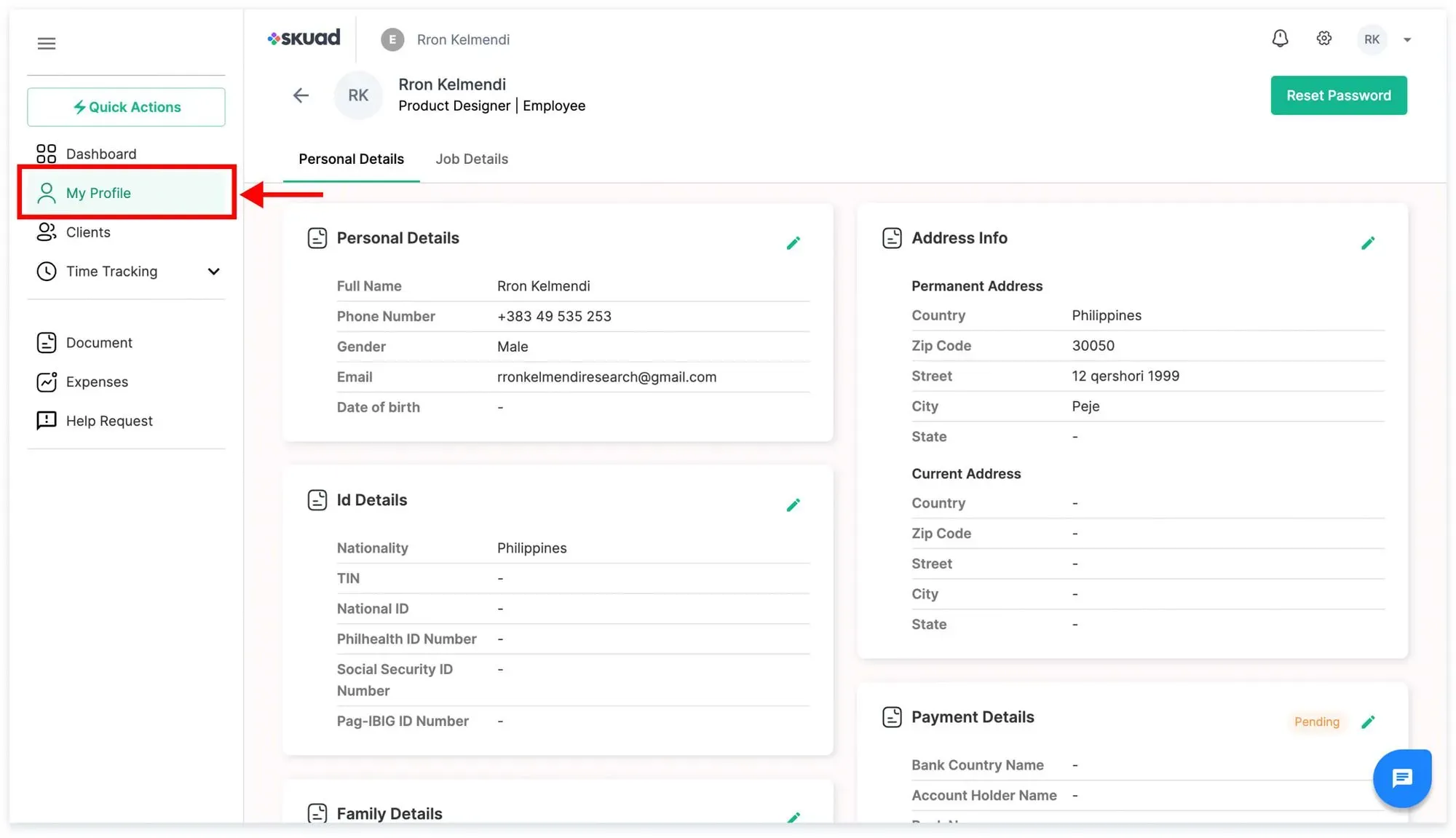 Step 1: Log in to Skuad’s platform and navigate to the ‘My Profile’ section.