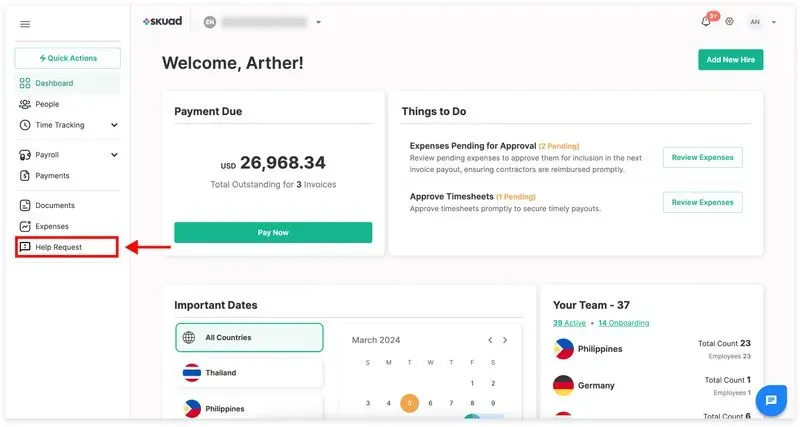 Step 1: Click on the ‘Help Request’ button on the sidebar to the left of the screen.