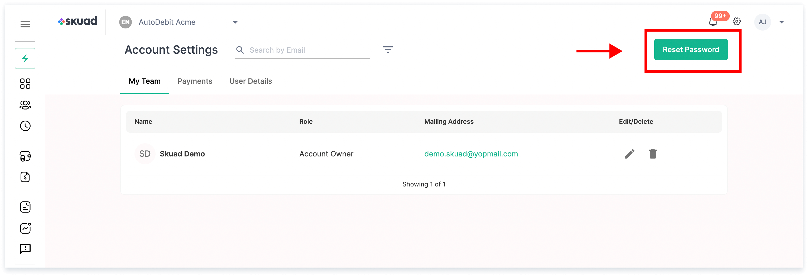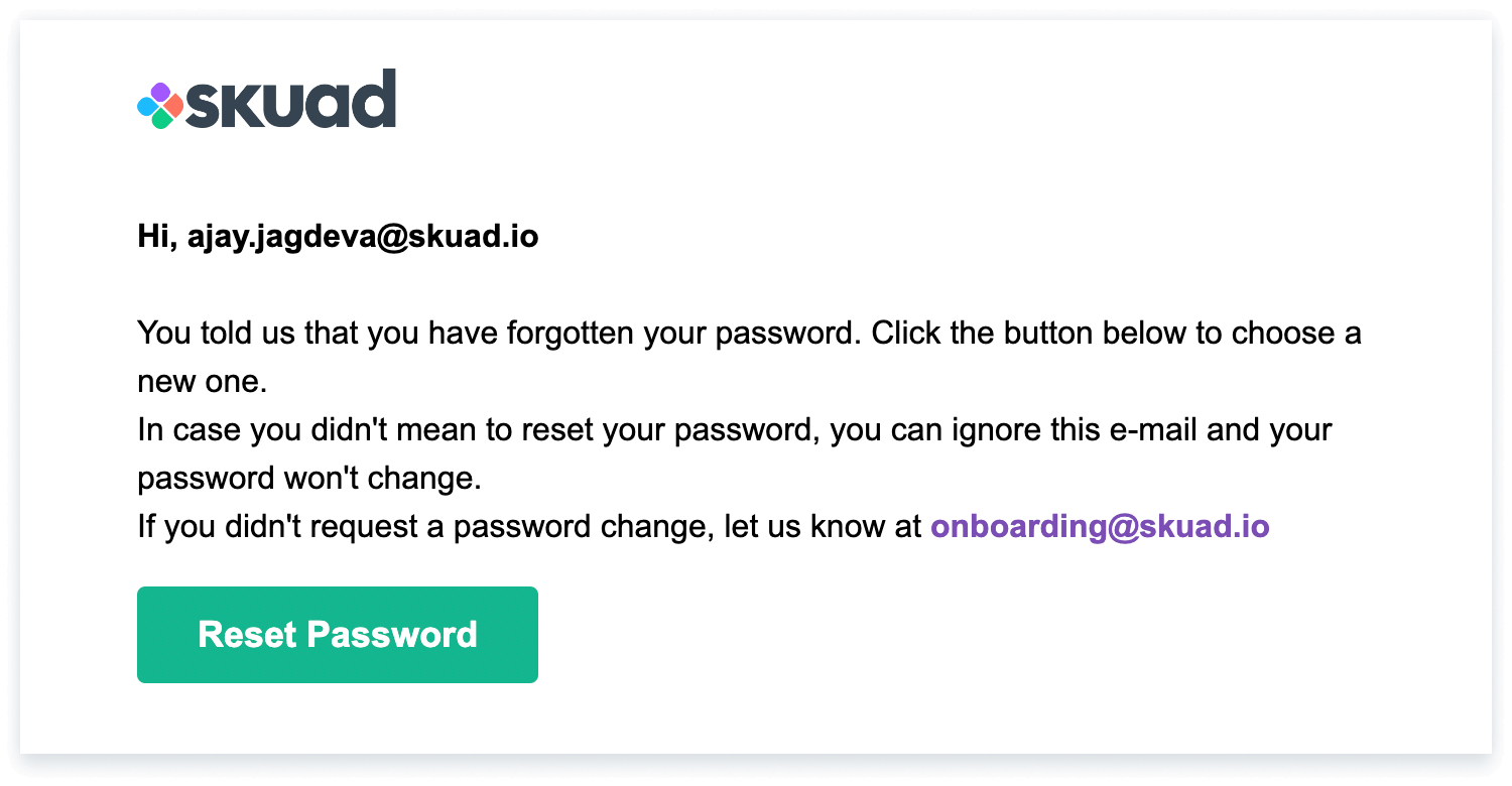 Step 2: When you click the ‘Reset Password’ button, Skuad sends you an email with the password reset link on your email address registered with Skuad.