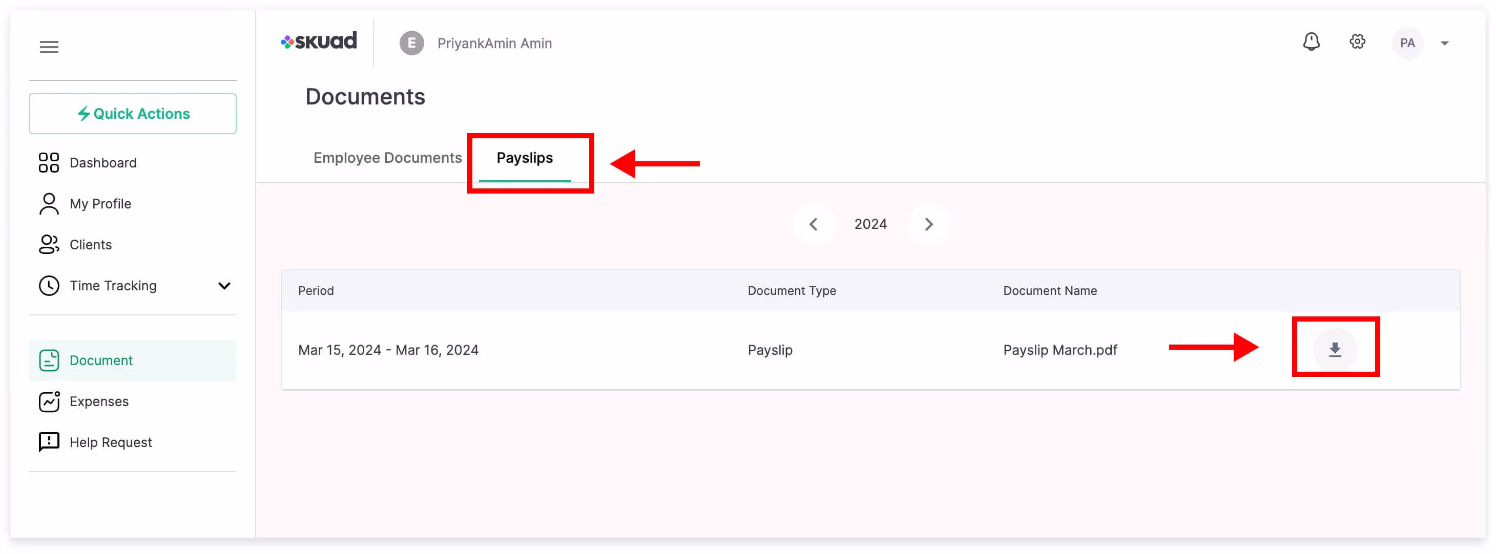 Step 2: Click on the ‘Payslips’ tab and you can now view your payslips by using the download option.