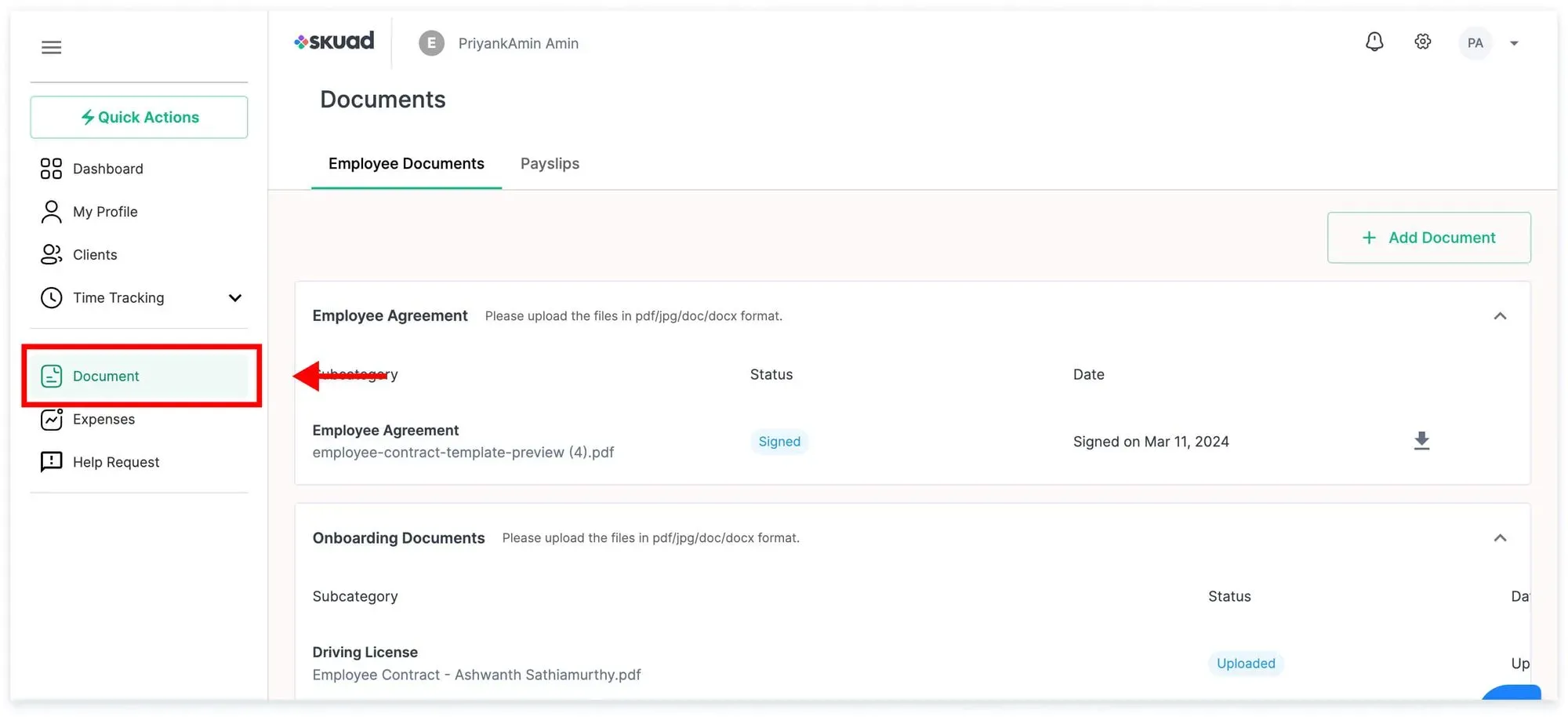 Step 1: Log into the platform and navigate to the ‘Document’ tab on the side panel.