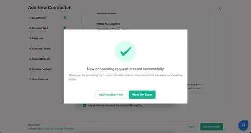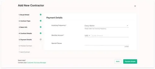Step 7: Add the ‘Payout Amount’ and choose the ‘Invoice Frequency’ based on which the contractor will raise invoices.