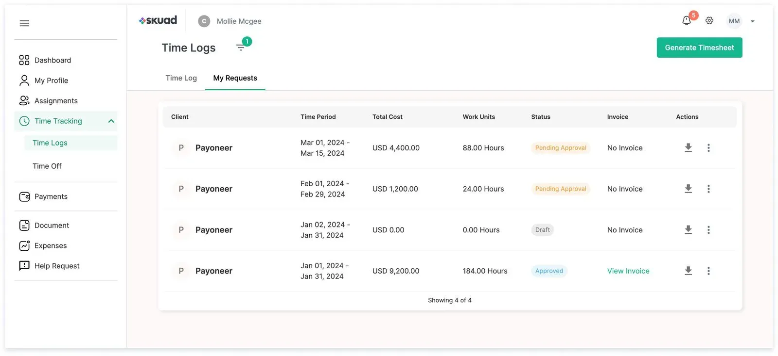 - Timesheet statuses (e.g., submitted, pending approval, approved) will be visible, indicating the current state of your timesheet.